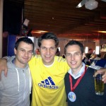Das Tanzbein schwingen und Krüge stemmen – dass unsere RFK-ler das können, haben sie bereits bei einigen Events bewiesen. Dass sie aber auch die meiste Kondition aller Anwesenden aufwiesen, damit hatte das Gros der Gäste nicht gerechnet. Gestärkt durch eine kulinarische Schlemmertour durch Bayerns Landeshauptstadt ging es ab 19.00 Uhr in die Vollen. Während Tanja und Hajö auf der Tanzfläche für Stimmung sorgten, wußten Michael, Schrotti und Björn an der Theke zu überzeugen. Nein, diesmal gab es keinen Vodka-Red Bull-Wettkampf, sondern lediglich das eine oder andere gepflegte Bier im Stehen. Geratscht wurde natürlich auch und jede Menge wirres Zeug gesponnen. Ob es aber tatsächlich dazu kommt, dass Schrotti irgendwann einmal mehr als der UEFA-Gesandte in der Ukraine sein wird oder Michael, Björn und Vereinsanwärter Johannes bei der Challenge in Roth an den Start gehen, bleibt abzuwarten. Sicher ist aber, es war ein famoser Abend und Hajö ein richtig guter Gastgeber!